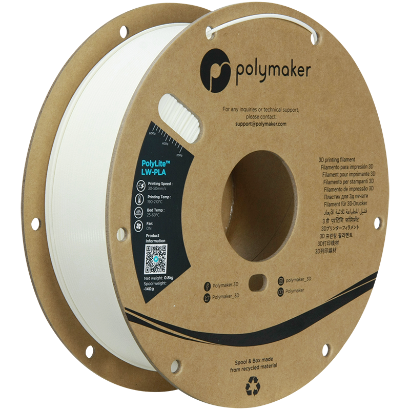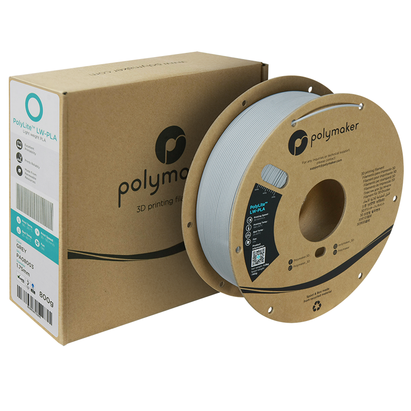 Polymaker PolyLite LW-PLA is a special foamed PLA designed to print with similar settings as regular PLA but with half the weight.